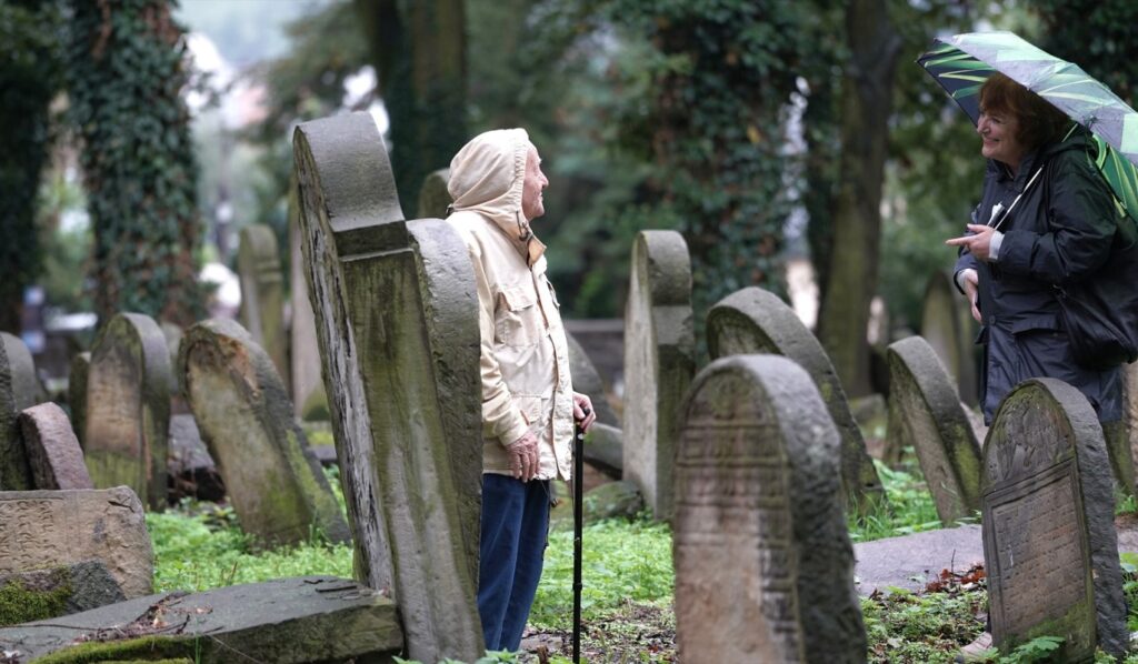Potomkowie na cmentarzu żydowskim w Brzesku