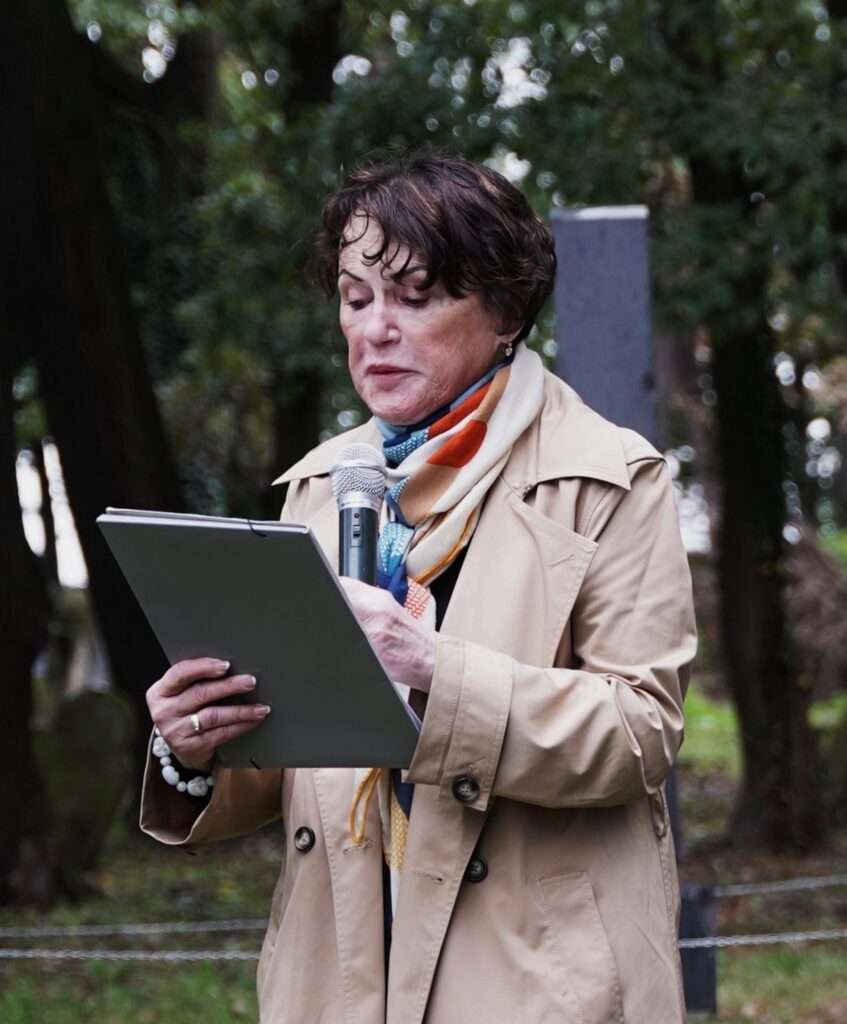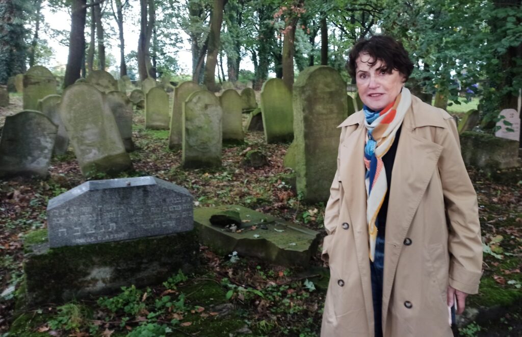 Mimi Sperber przy nagrobku dziadka Pinkasa Glassnera (1878-1938)