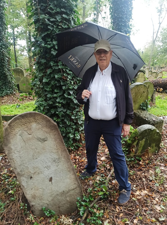Benny Farber przy nagrobku pra-prababci Rifki Landau (1798-1883)