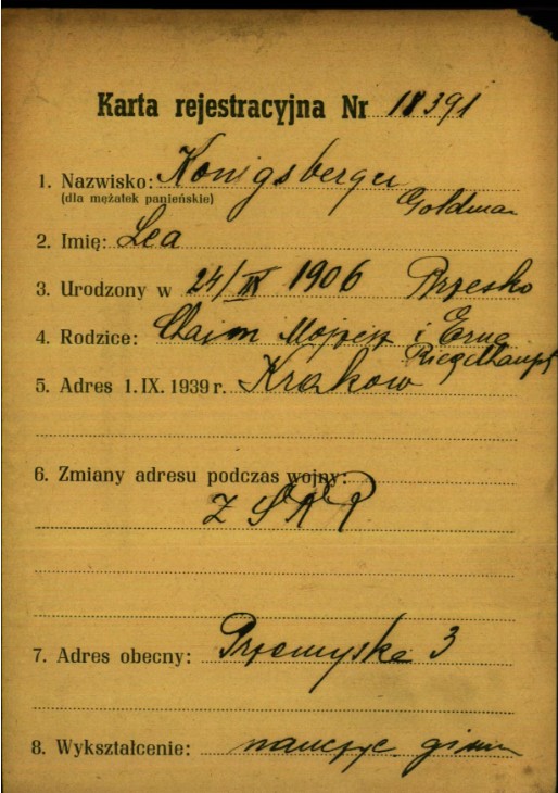 Urodzona w Brzesku 24 września 1906 roku, córka kupca Mojżesza Chaima Goldmana i Ettel z domu Riegelhaupt. Uczęszczała do gimnazjum w latach 1916-1924, została nauczycielką, wyszła za mąż, nazwisko po mężu Konigsberger. Przeżyła wojnę w Związku Radzieckim, po wojnie była w Krakowie, później wyemigrowała do Izraela. Miała dzieci i wnuki, zmarła w Jerozolimie w 1993 roku