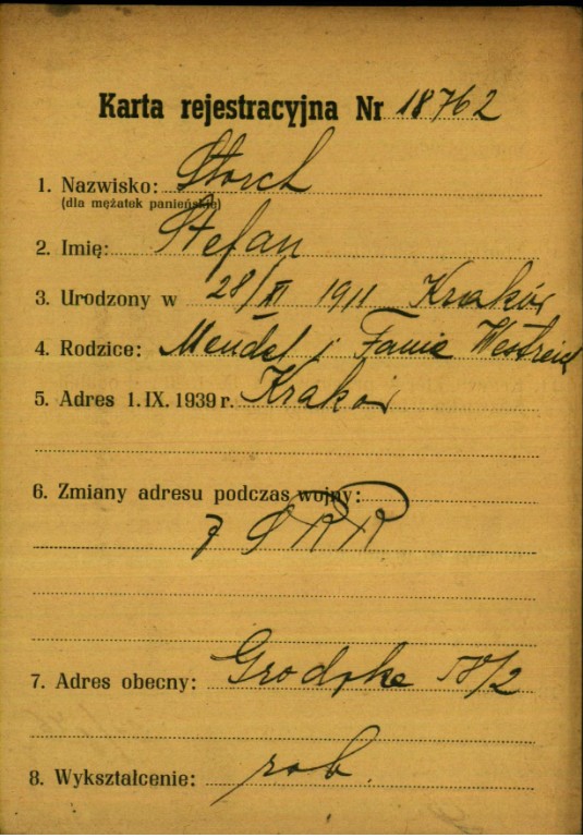 Urodzony w Szczurowej 16 grudnia 1914 roku, syn Kupca Pinkasa i Gittli z domu Lejzer, uczęszczał do gimnazjum w Brzesku w roku szkolnym 1930/31 Ocalał, po wojnie mieszkał w Izraelu, w 1956 roku złożył w Jad Waszem świadectwa dotyczące śmierci jego ojca, 3 braci i siostry.