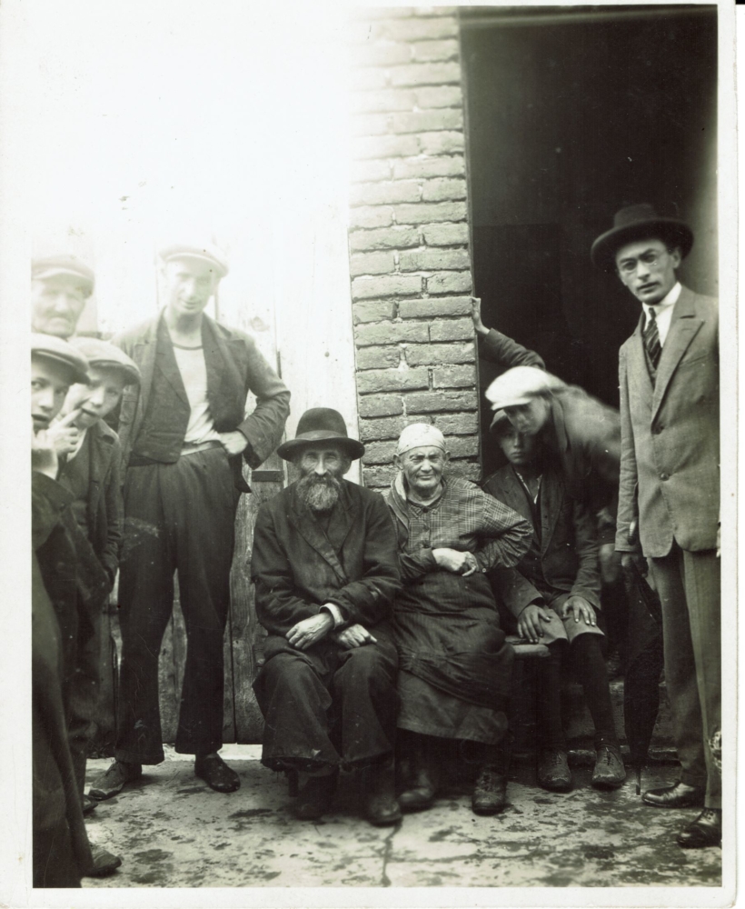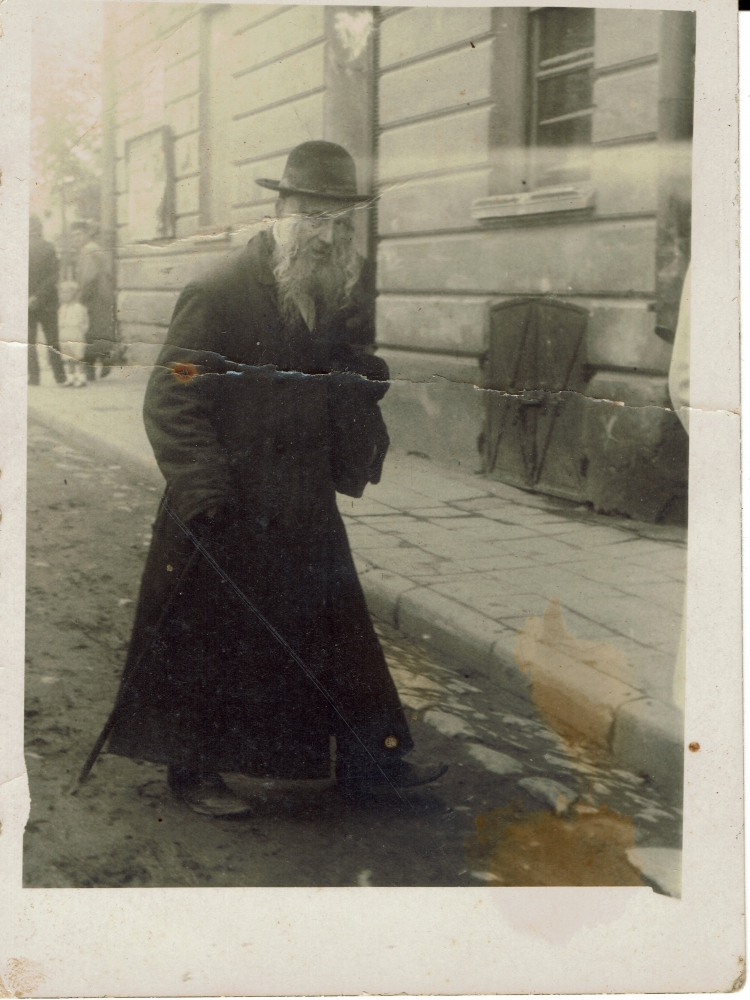 Dom rodziny Weiss-Seelengut w Brzesku na obecnej ul. Berka Joselewicza. Przed domem stoi Simon Schindler, szwagier Chwule Seelengut (matki Schaje Weissa). W tym domu urodził się Schaje Weiss i siódemka jego rodzeństwa. Weiss-Seelengut family house at Berka Joselewicza street in Brzesko. The man in front of the house is Simon Schindler, brother-in-law of Chwule Seelengut (mother of Schaje Weiss). Schaje as well as his seven siblings were born in this house.